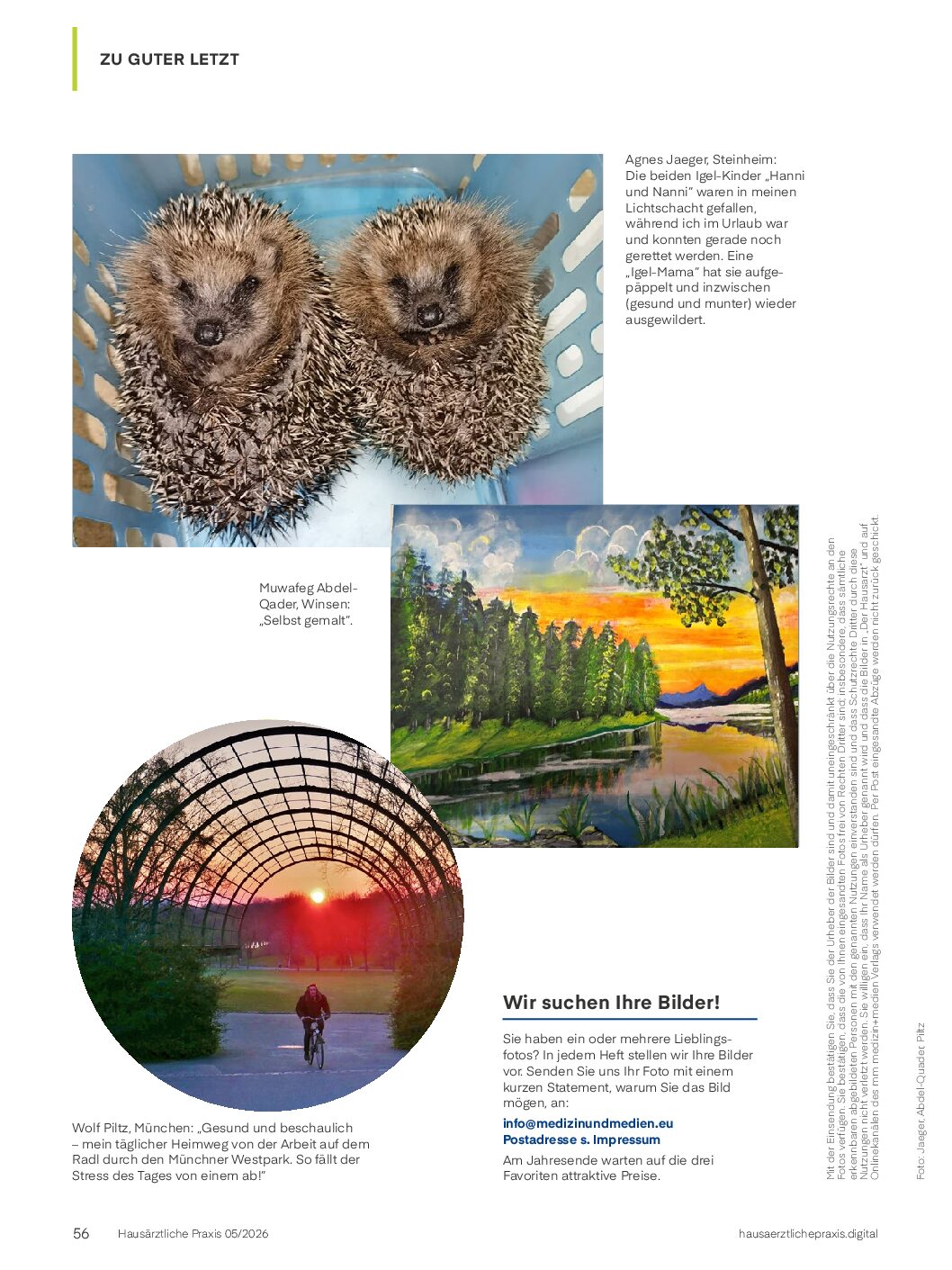 Sie haben ein oder mehrere Lieblingsfotos? In jedem Heft stellen wir Ihre Bilder vor. Am Jahresende warten auf die drei Favoriten attraktive Preise.