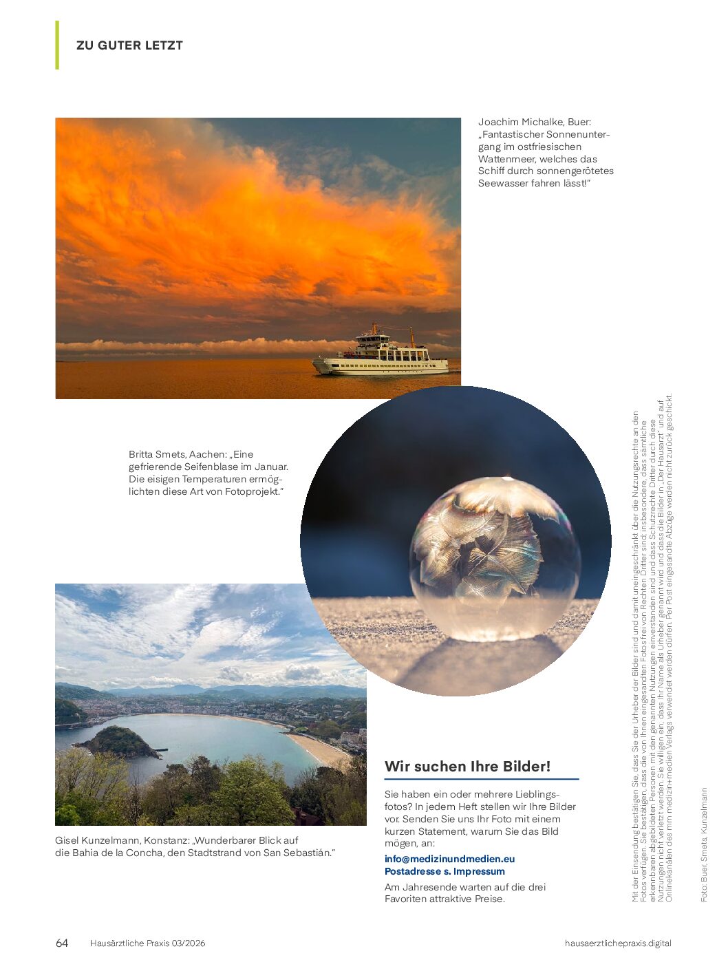 Sie haben ein oder mehrere Lieblingsfotos? In jedem Heft stellen wir Ihre Bilder vor. Am Jahresende warten auf die drei Favoriten attraktive Preise.