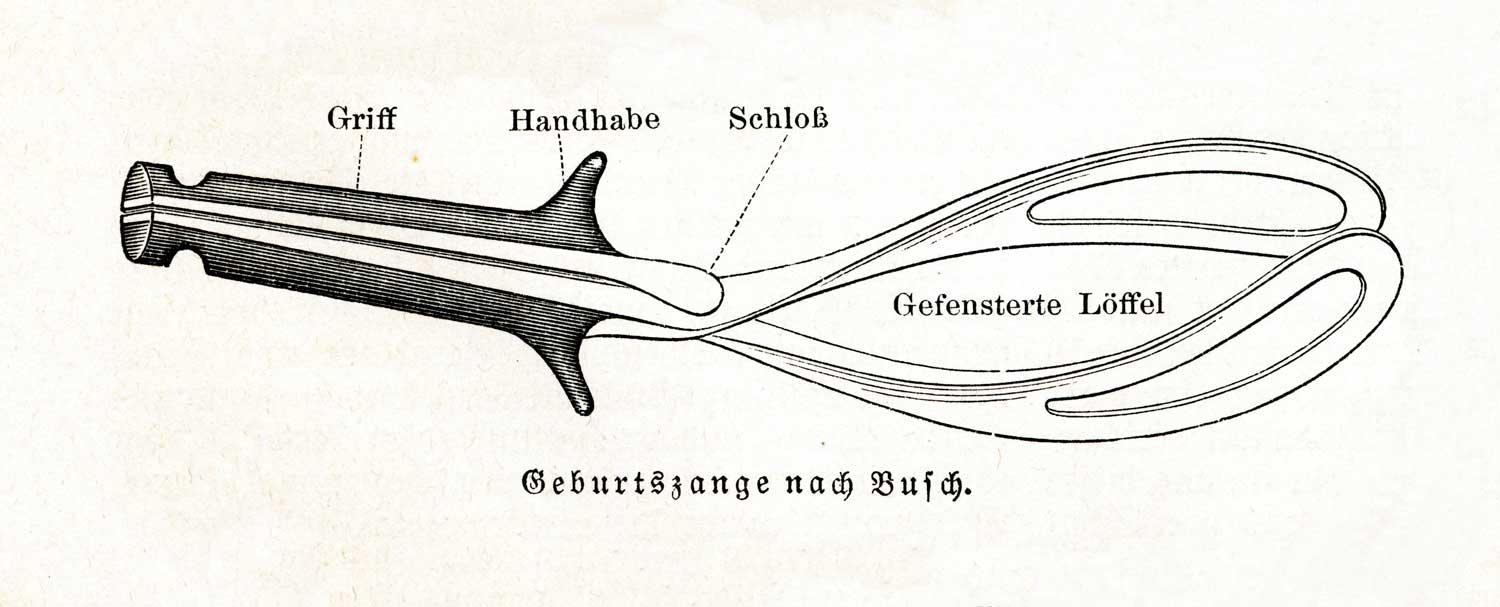 Unter dem Dielenboden auf dem Speicher eines Hauses in Essex (etwa eine Stunde von London entfernt) wurde 1813 etwas gefunden, was ein Jahrhunderte altes Geheimnis lüften sollte: fünf Geburtszangen! Es waren die ersten Instrumente dieser Art. Die Zangen waren aus Metall und erstaunlich gut geformt. Die Blätter hatten eine Krümmung, ideal, um den Kopf des Neugeborenen zu fassen.