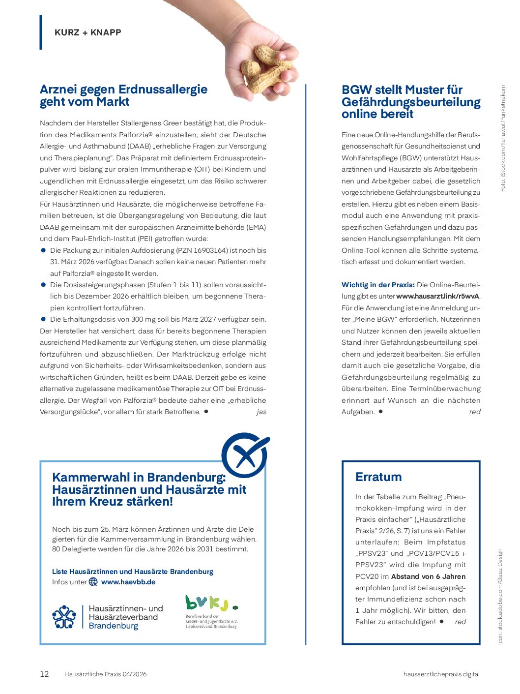 Derzeit gebe es keine alternative zugelassene medikamentöse Therapie zur oralen Immuntherapie bei Erdnussallergie. “Der Wegfall von Palforzia® bedeutet daher eine erhebliche Versorgungslücke – insbesondere für Patientinnen und Patienten, die bereits auf kleinste Mengen Erdnuss schwer reagieren.”