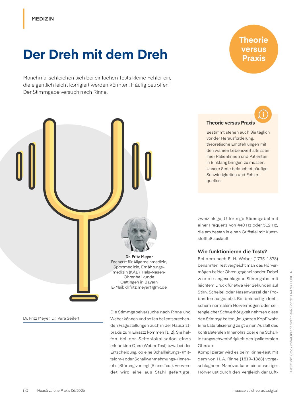 2. Meyer F. Stimmgabelversuche: Tradiertes Ritual oder sinnvolle Entscheidungshilfe? Der Allgemeinarzt 2025; 47 (9): 40–43