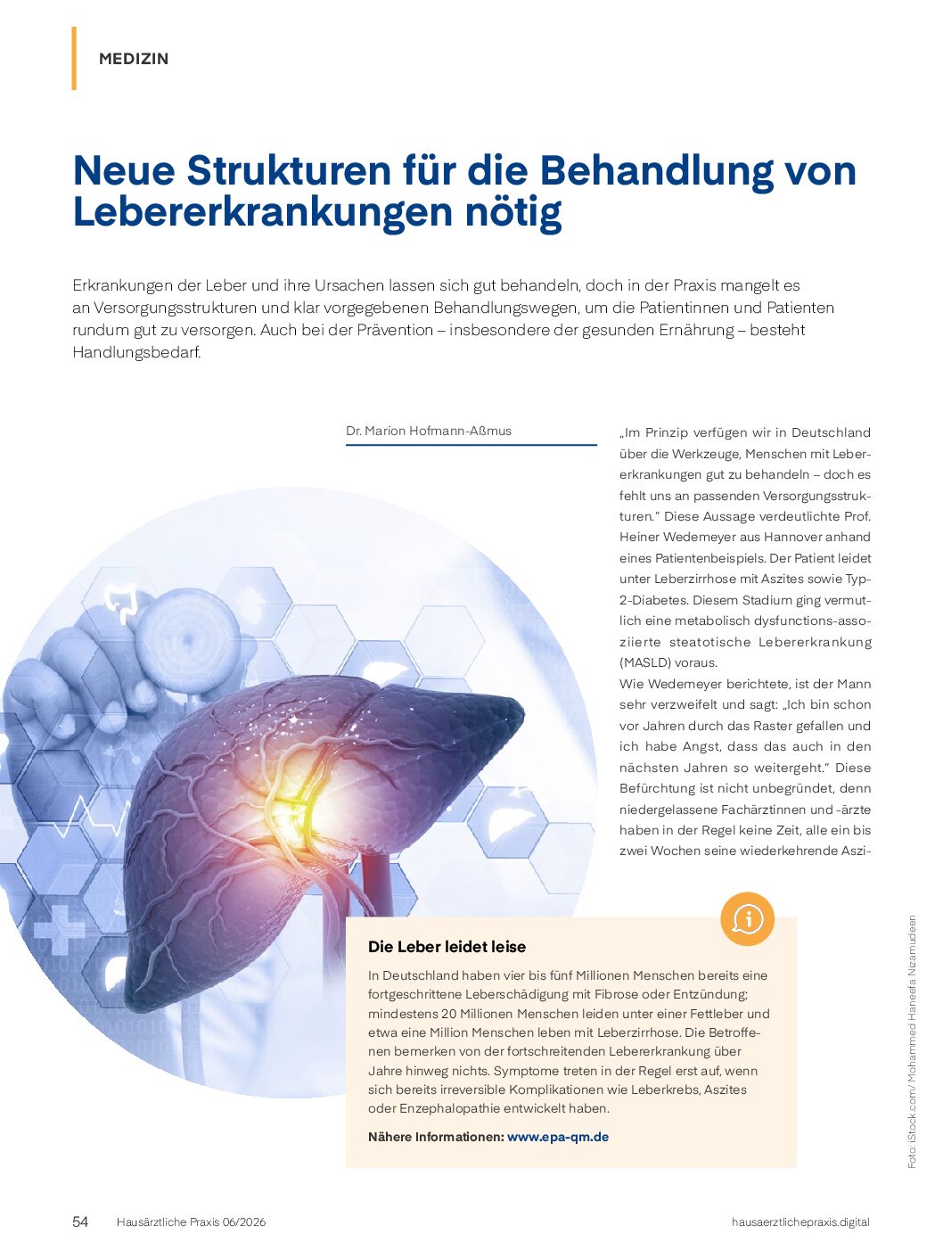 Wedemeyer zufolge besteht eine wichtige Aufgabe der Fachgesellschaft darin, die Menschen über das Risiko für eine Lebererkrankung aufzuklären und ein Bewusstsein zu schaffen, welche Auswirkungen der Lebensstil und insbesondere die Ernährung auf die Lebergesundheit haben – um damit letztlich die Krankheitslast in der Bevölkerung zu verringern.