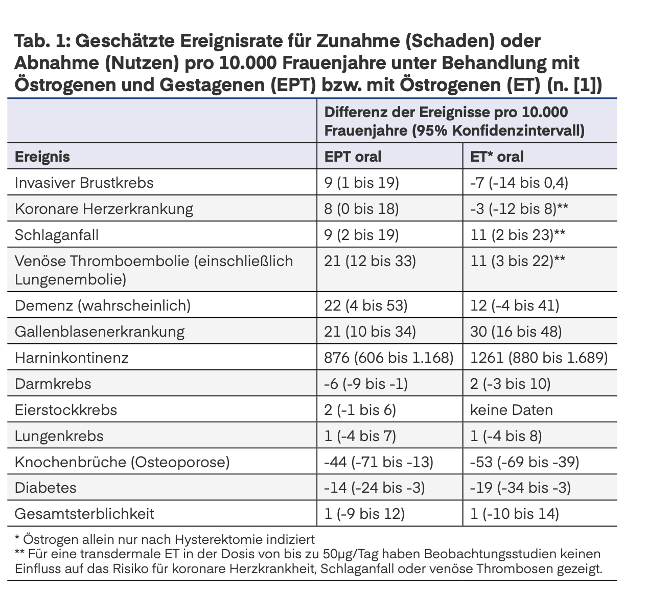 Für einen Überblick zu den Risiken einer HRT verwies sie auf die Leitlinie (s. Tab.1 unten).