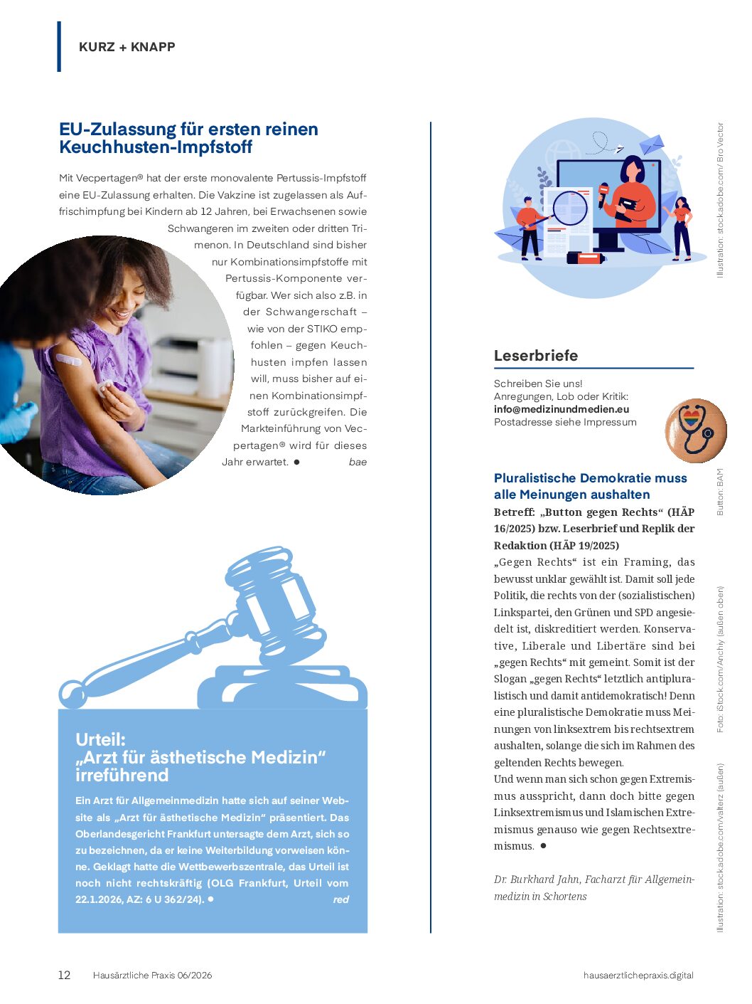 Mit Vecpertagen® hat der erste monovalente Pertussis-Impfstoff eine EU-Zulassung erhalten. Die Vakzine ist zugelassen als Auffrischimpfung bei Kindern ab 12 Jahren, bei Erwachsenen sowie Schwangeren im zweiten oder dritten Trimenon. In Deutschland sind bisher nur Kombinationsimpfstoffe mit Pertussis-Komponente verfügbar.