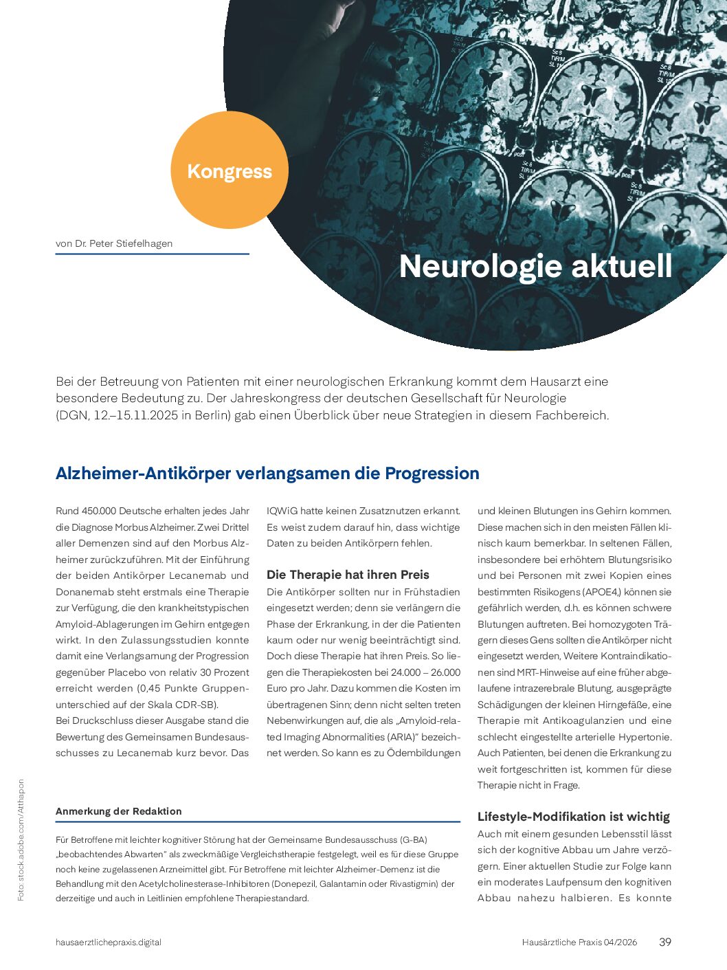 Bei Druckschluss dieser Ausgabe stand die Bewertung des Gemeinsamen Bundesausschusses zu Lecanemab kurz bevor. Das IQWiG hatte keinen Zusatznutzen erkannt. Es weist zudem darauf hin, dass wichtige Daten zu beiden Antikörpern fehlen.