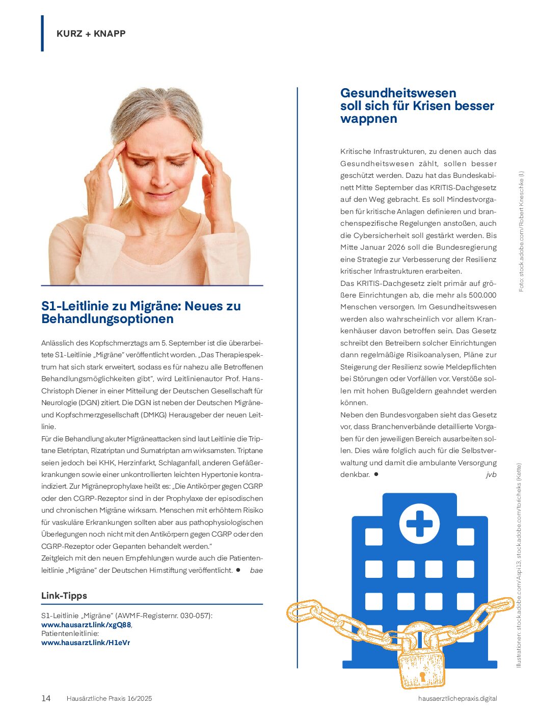 Zeitgleich mit den neuen Empfehlungen wurde auch die Patientenleitlinie “Migräne” der Deutschen Hirnstiftung veröffentlicht.