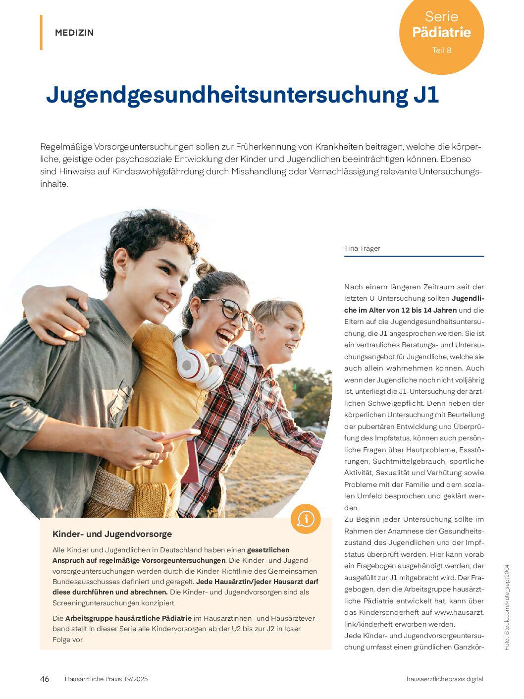 Serie "Kinder- und Jugendvorsorge" Teil 8Jugendgesundheitsuntersuchung J1