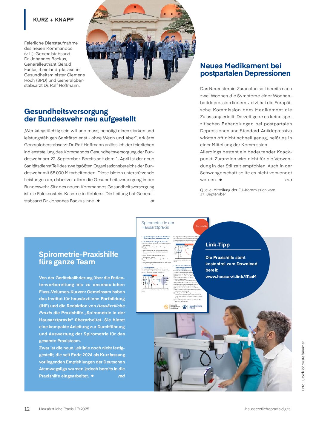 München. Ab sofort steht für Hausärztinnen und Hausärzte sowie ihr Praxispersonal die überarbeitete Praxishilfe Spirometrie kostenfrei zum Herunterladen zur Verfügung. Diese hat die Redaktion von Hausärztliche Praxis gemeinsam mit dem Institut für Hausärztliche Fortbildung (IHF) aktualisiert.