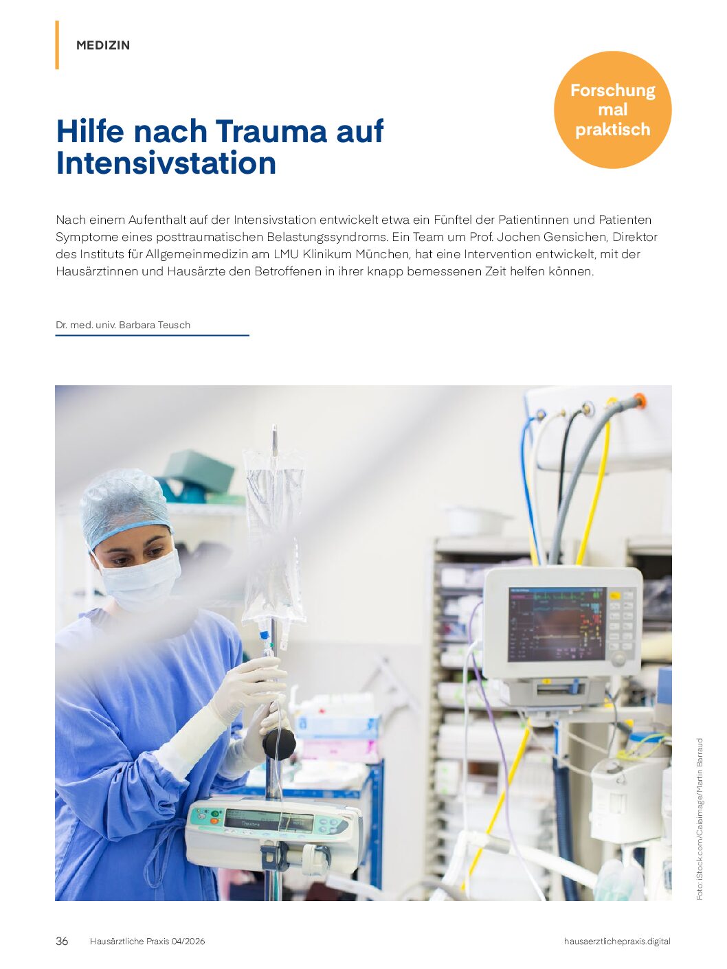 Nach einem Aufenthalt auf der Intensivstation entwickelt etwa ein Fünftel der Patientinnen und Patienten Symptome eines posttraumatischen Belastungssyndroms. Ein Team um Prof. Jochen Gensichen, Direktor des Instituts für Allgemeinmedizin am LMU Klinikum München, hat eine Intervention entwickelt, mit der Hausärztinnen und Hausärzte den Betroffenen in ihrer knapp bemessenen Zeit helfen können.