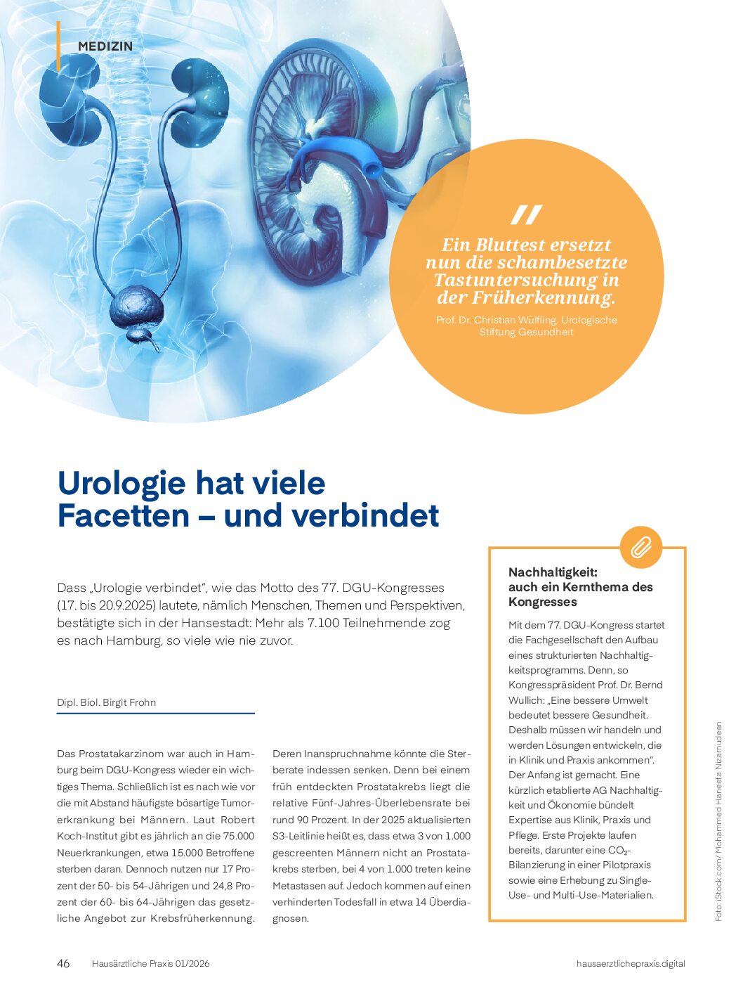 Mit dem 77. DGU-Kongress startet die Fachgesellschaft den Aufbau eines strukturierten Nachhaltigkeitsprogramms. Denn, so Kongresspräsident Prof. Dr. Bernd Wullich: “Eine bessere Umwelt bedeutet bessere Gesundheit. Deshalb müssen wir handeln und werden Lösungen entwickeln, die in Klinik und Praxis ankommen”.
