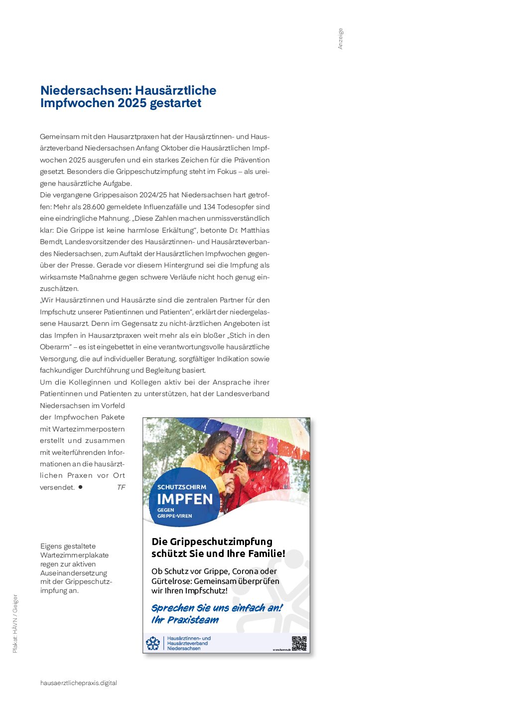 Hausärztinnen- und Hausärzteverband NiedersachsenHausärztliche Impfwochen 2025 gestartet