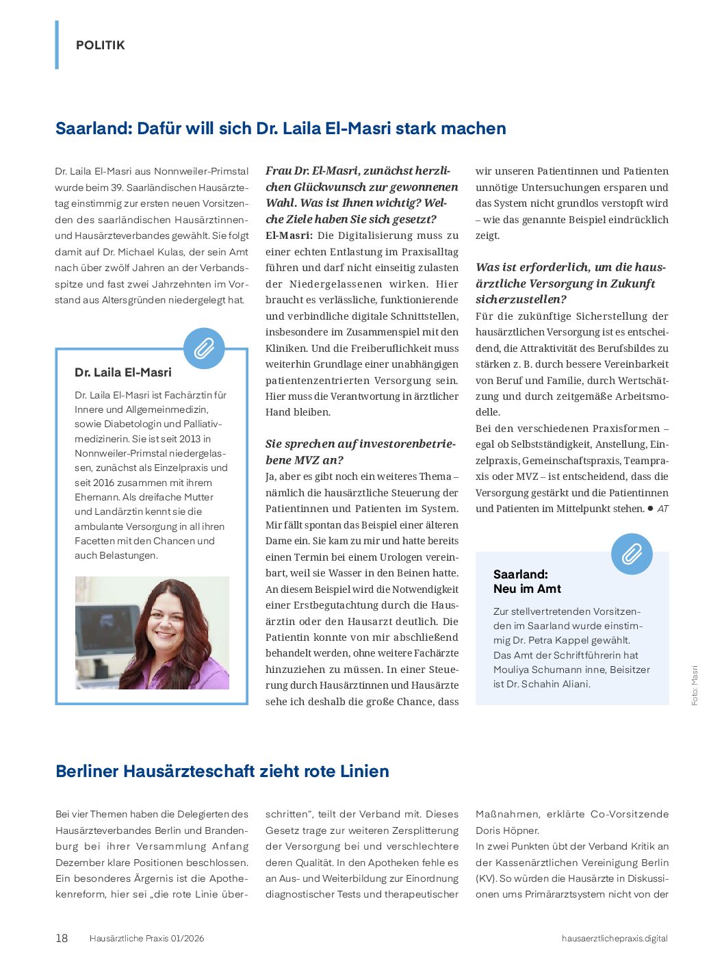 Hausärztinnen- und Hausärzteverband SaarlandDafür will sich Dr. Laila El-Masri stark machen
