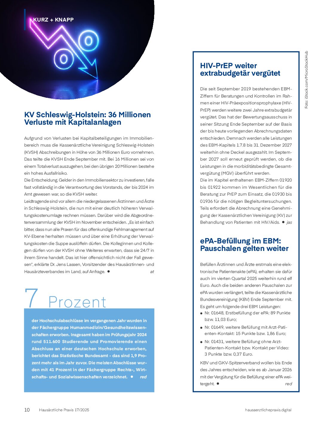 Leidtragende sind vor allem die niedergelassenen Ärztinnen und Ärzte in Schleswig-Holstein, die nun mit einer deutlich höheren Verwaltungskostenumlage rechnen müssen. Darüber wird die Abgeordnetenversammlung der KVSH im Detail im November entscheiden.