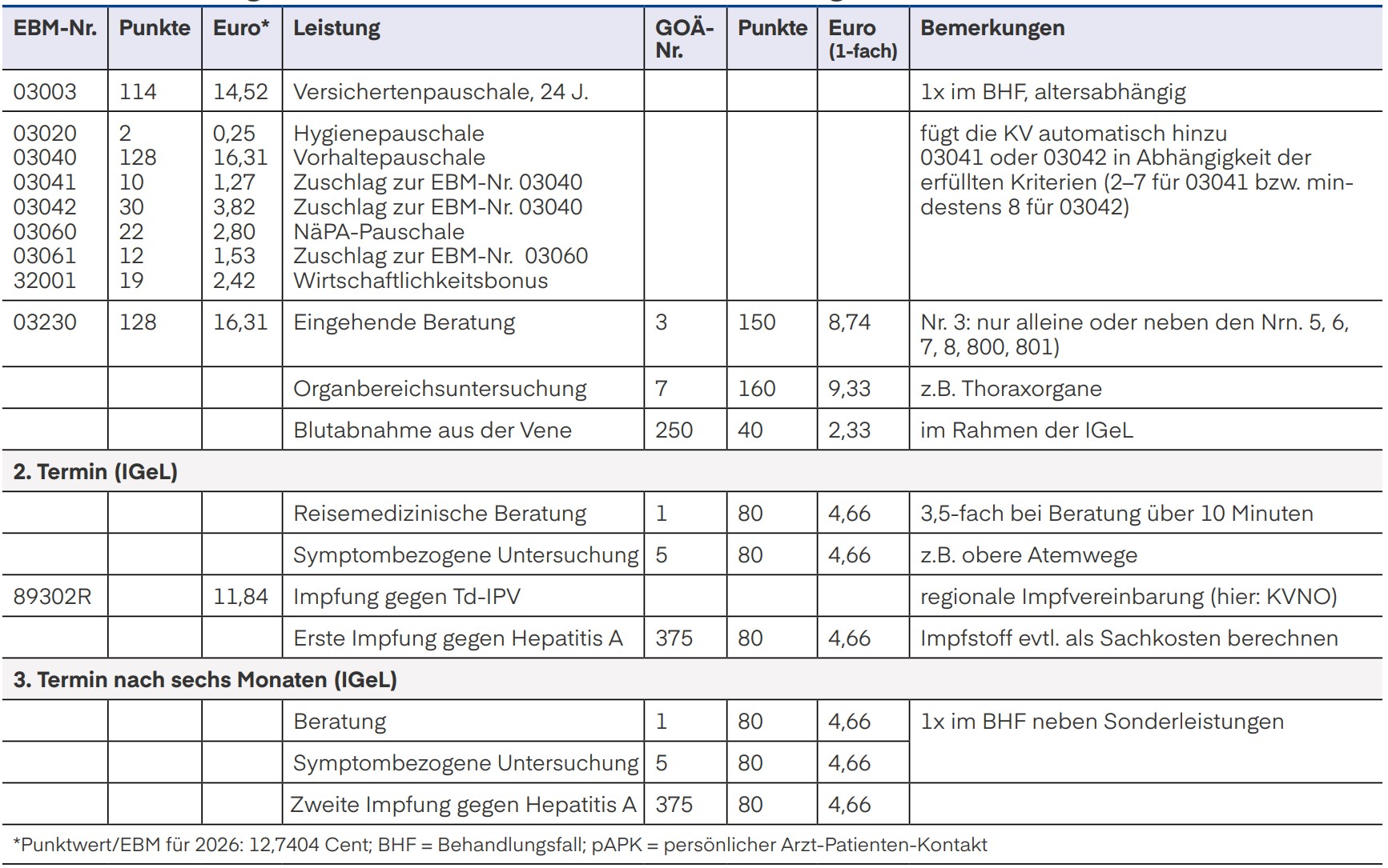 Bei der Auswahl der Beratungsleistung kommt es auf die Dauer und Komplexität der Beratung an. Ein einwöchiger Strandurlaub in Ägypten ist vom Umfang der Beratung sicher ein anderer als bei einem Studenten, der eine Rucksacktour über drei Monate durch Südostasien plant. Die Spanne reicht hier von der Nr. 1 zum Regelsatz (10,72 Euro) bis zur Nr. 3 zum Höchstsatz (30,60 Euro).