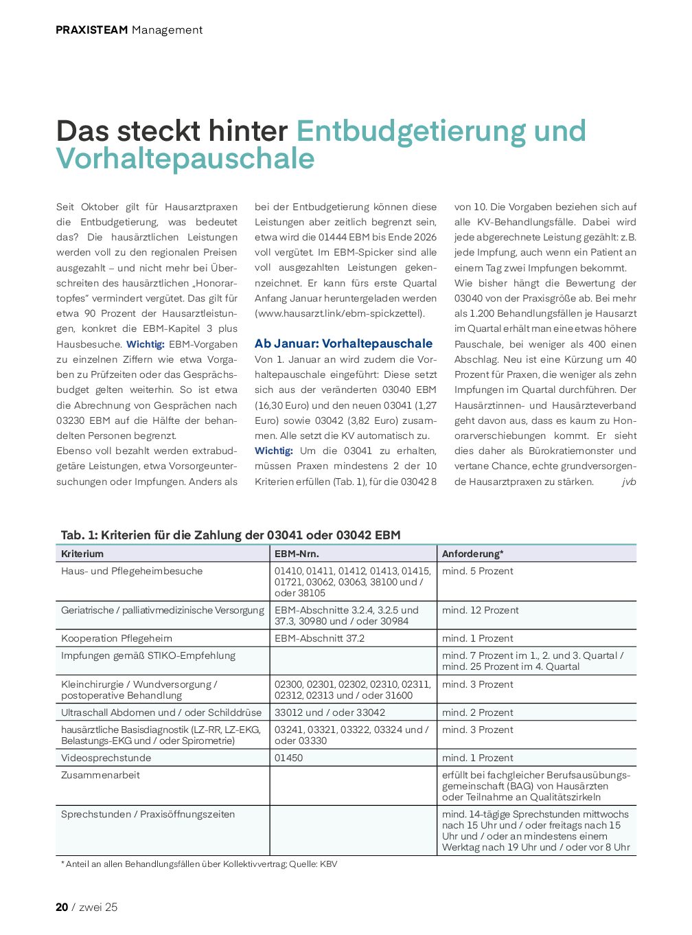 Seit Oktober gilt für Hausarztpraxen die Entbudgetierung, was bedeutet das? Die hausärztlichen Leistungen werden voll zu den regionalen Preisen ausgezahlt – und nicht mehr bei Überschreiten des hausärztlichen „Honorartopfes“ vermindert vergütet.