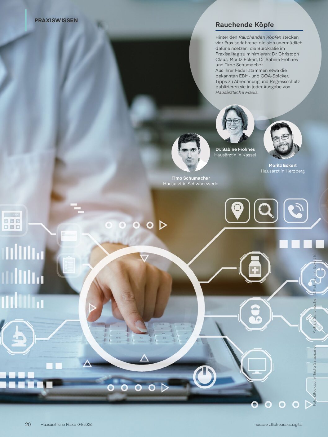 Im Folgenden werden zunächst die Grundsätze zur Pauschale erklärt. In einem zweiten Teil in Ausgabe 5 werden dann weitere Tipps zur Umsetzung der Kriterien gegeben. Wer nicht so lange warten möchte, kann jetzt schon online weiterlesen: www.hausarzt.link/oVI1t.