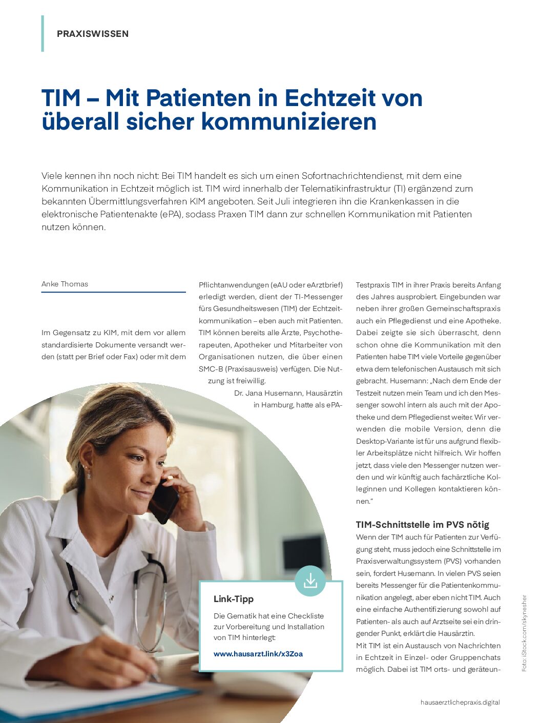Wenn der TIM auch für Patienten zur Verfügung steht, muss jedoch eine Schnittstelle im Praxisverwaltungssystem (PVS) vorhanden sein, fordert Husemann. In vielen PVS seien bereits Messenger für die Patientenkommunikation angelegt, aber eben nicht TIM. Auch eine einfache Authentifizierung sowohl auf Patienten- als auch auf Arztseite sei ein dringender Punkt, erklärt die Hausärztin.
