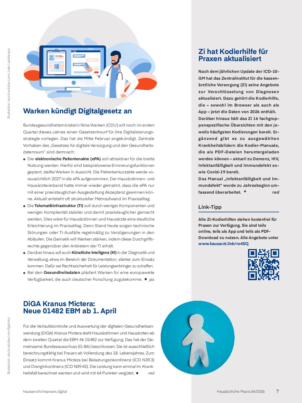 Für die Verlaufskontrolle und Auswertung der digitalen Gesundheitsanwendung (DiGA) Kranus Mictera steht Hausärztinnen und Hausärzten ab dem zweiten Quartal die EBM-Nr. 01482 zur Verfügung. Das hat der Gemeinsame Bundesausschuss (G-BA) beschlossen.